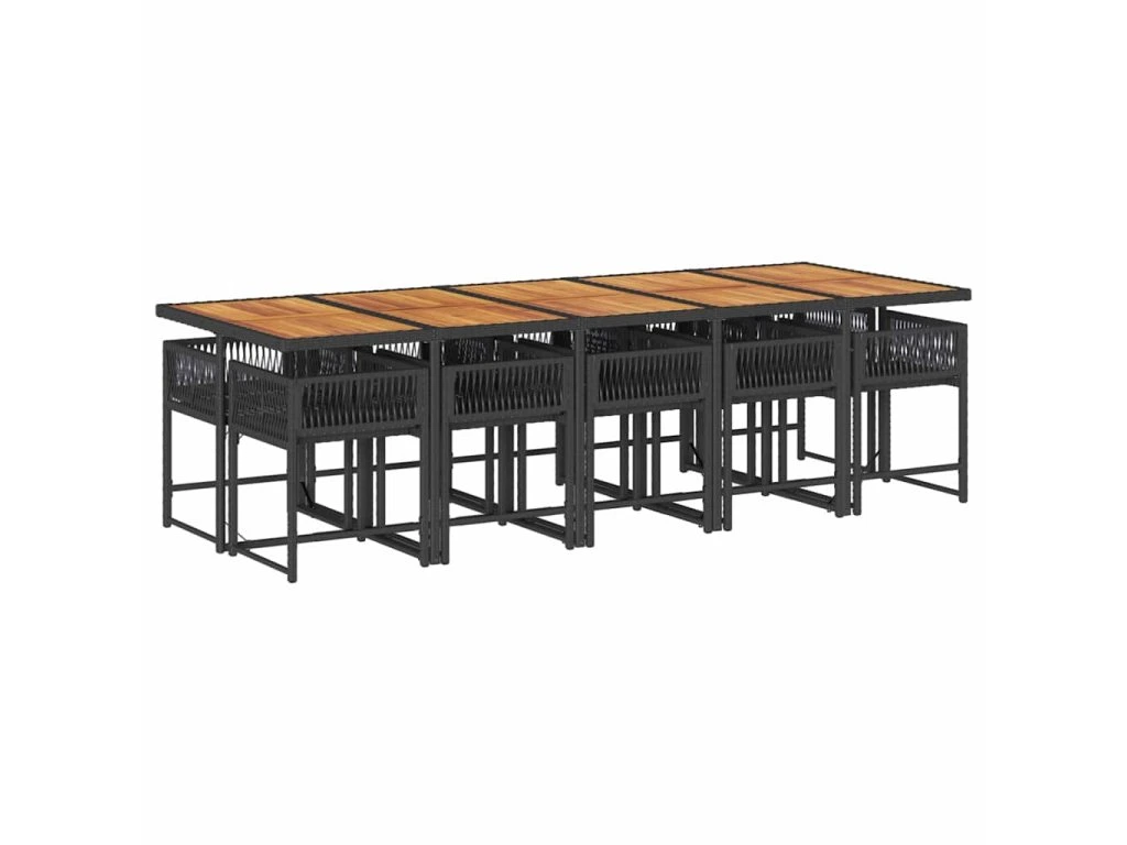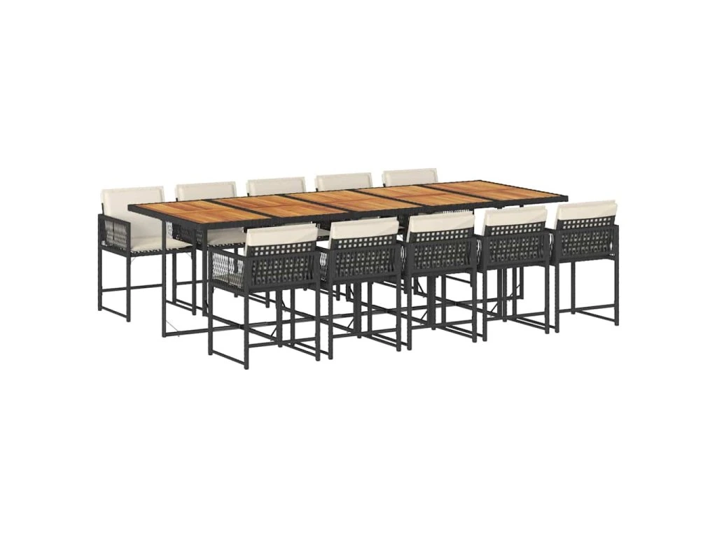 11dílný zahradní jídelní set s poduškami černý polyratan 3211479