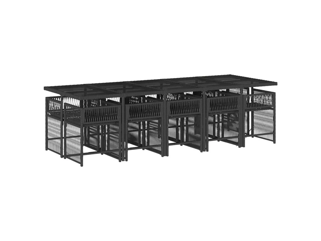 11dílný zahradní jídelní set s poduškami černý polyratan 3211650