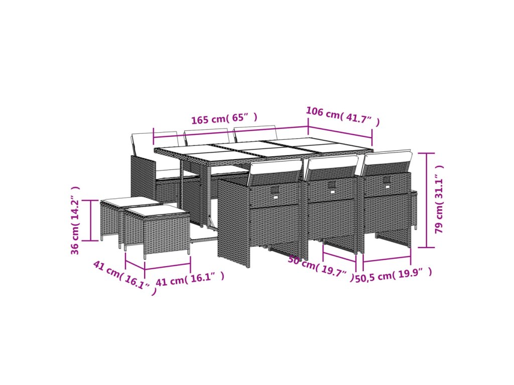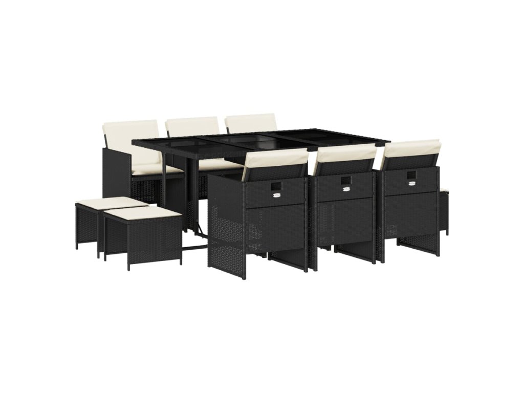 11dílný zahradní jídelní set s poduškami černý polyratan 3277733