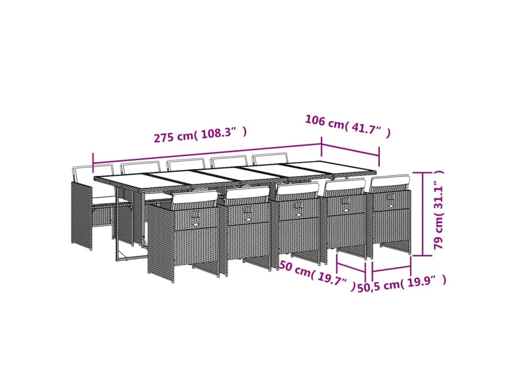 - Rozměry: 275 x 106 x 73 cm (D x Š x V)