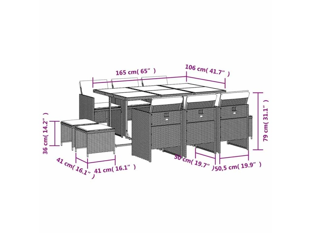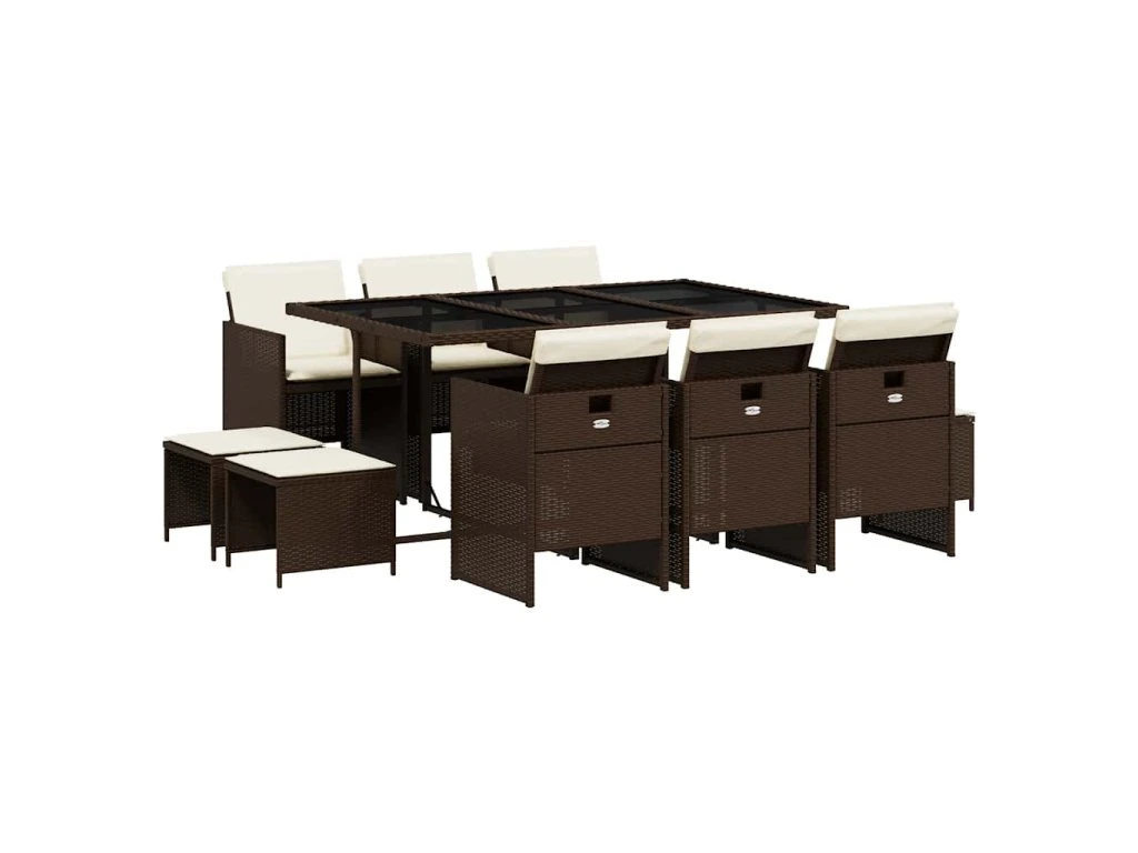 11dílný zahradní jídelní set s poduškami hnědý polyratan 3210609