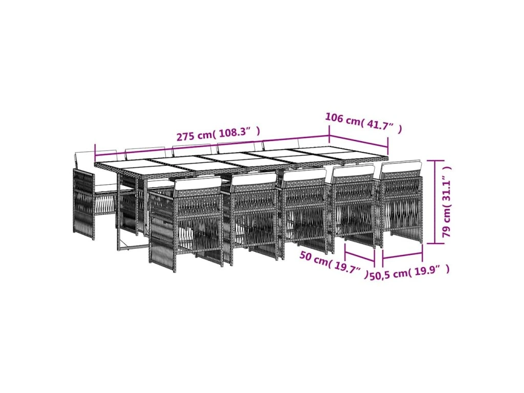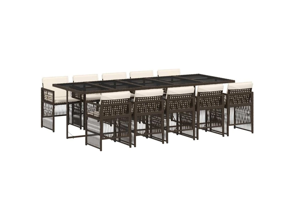 11dílný zahradní jídelní set s poduškami hnědý polyratan 3210933