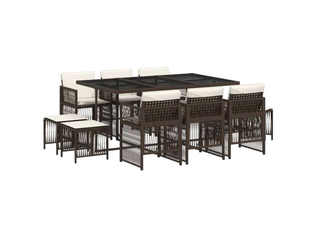 11dílný zahradní jídelní set s poduškami hnědý polyratan 3210969