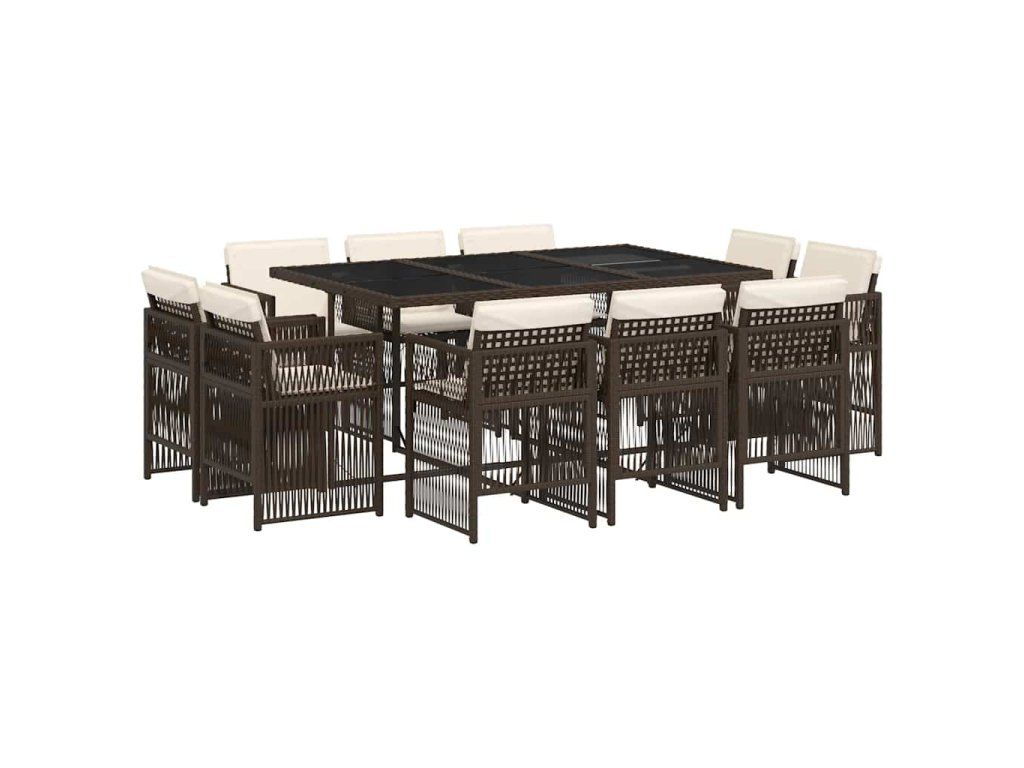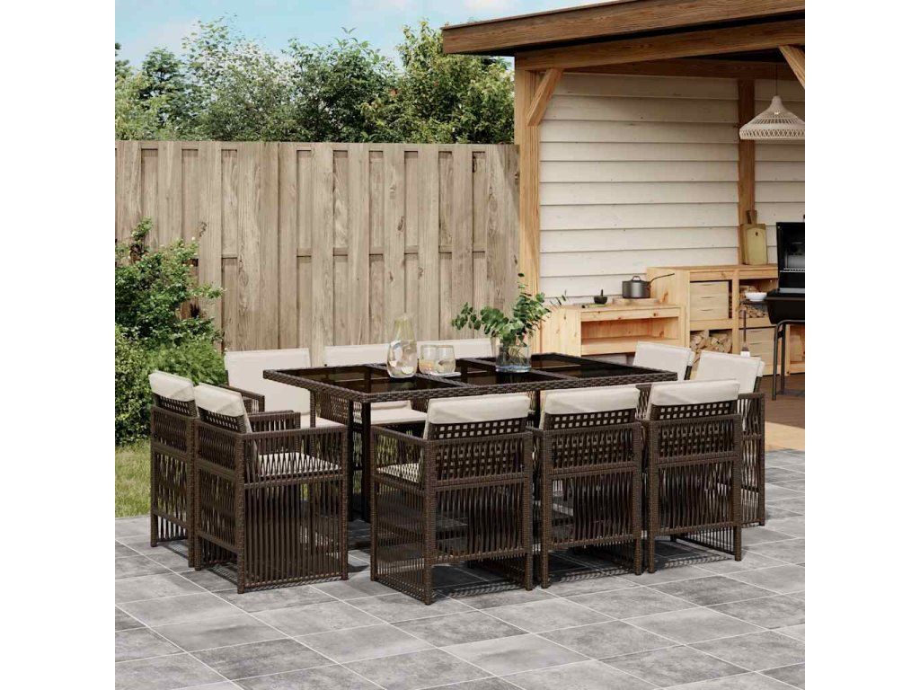 11dílný zahradní jídelní set s poduškami hnědý polyratan 3211029