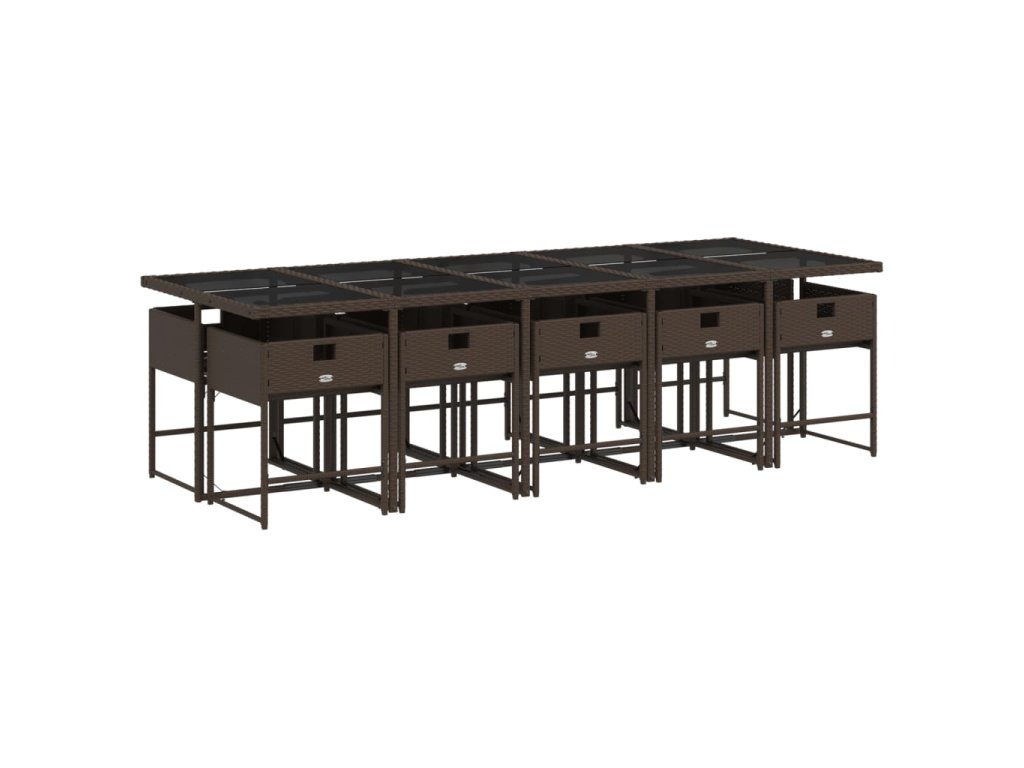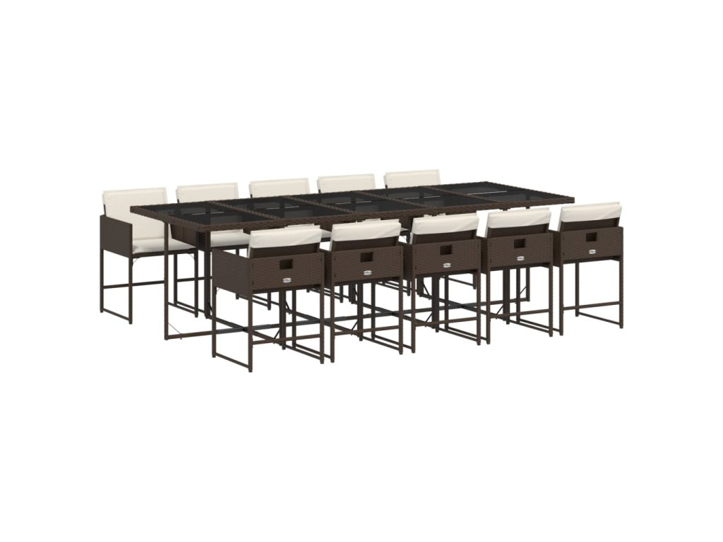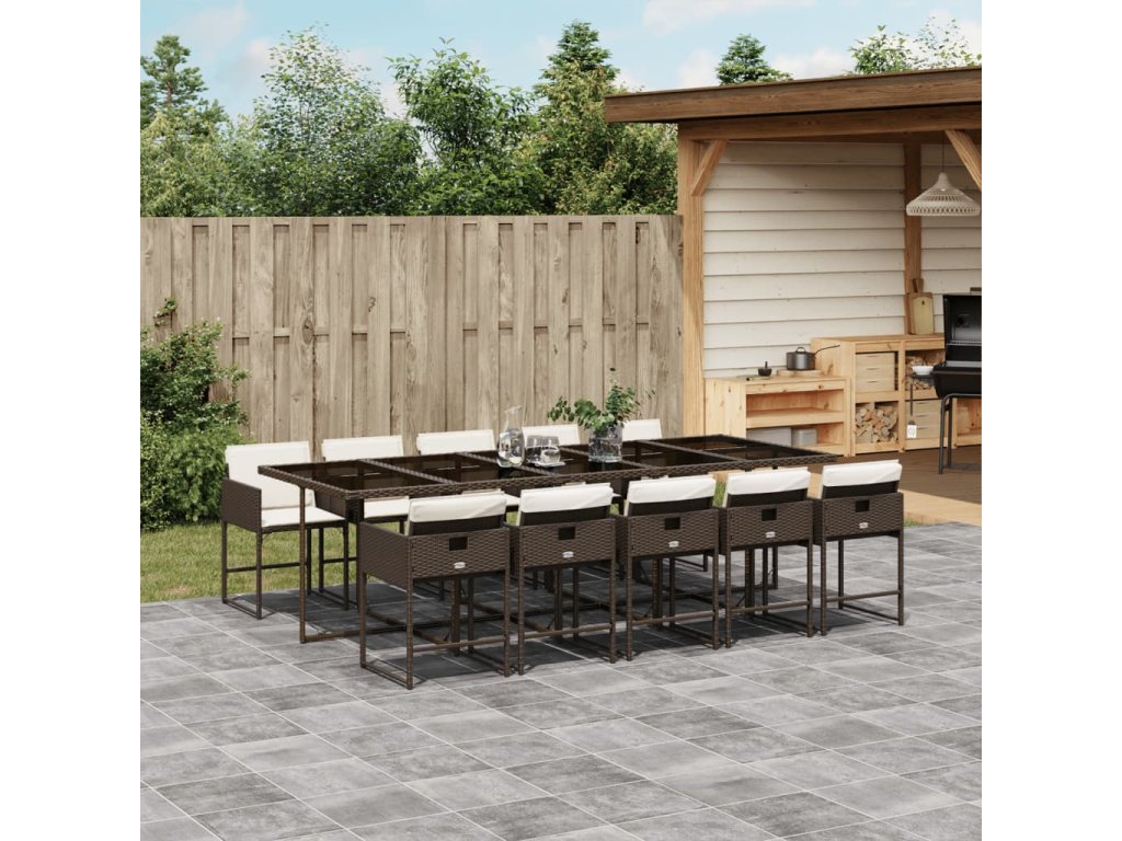 11dílný zahradní jídelní set s poduškami hnědý polyratan 3211293