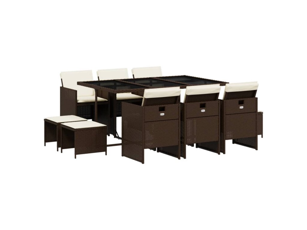 11dílný zahradní jídelní set s poduškami hnědý polyratan 3277736