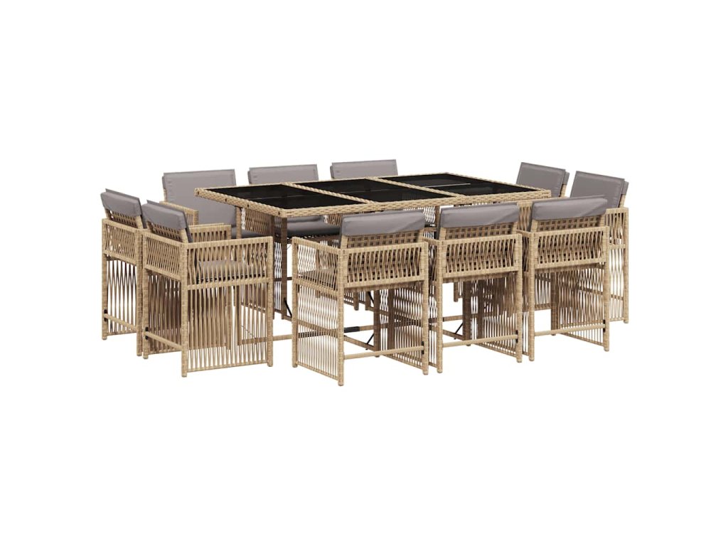11dílný zahradní jídelní set s poduškami mix béžové polyratan 3211752