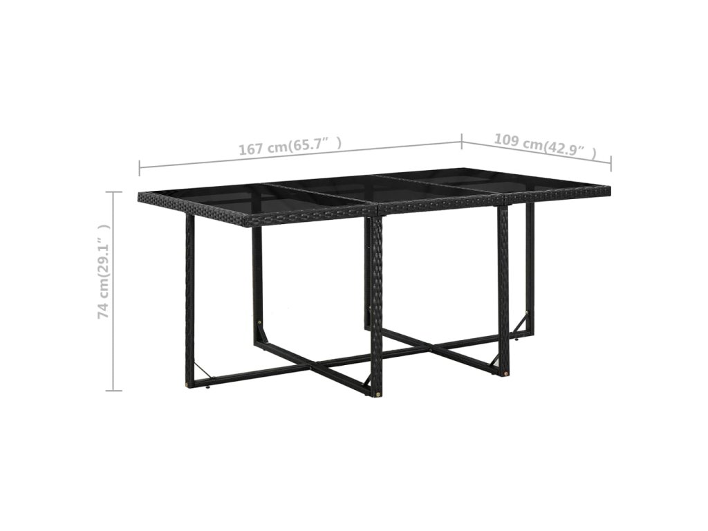 Tento ratanový jídelní set v elegantním současném designu bude skvělou volbou pro stolování na čerstvém vzduchu nebo relaxaci na zahradě. Ocelové rámy s práškovým nástřikem dodávají stolu i židlím pevnost a robustnost a díky lehké konstrukci se dají všechny kusy snadno přesouvat. Protože je vyroben z PE ratanu, odolného vůči vodě a povětrnostním vlivům, dá se jídelní set snadno čistit. Skleněná stolní deska se dá rovněž snadno čistit otřením vlhkým hadříkem.