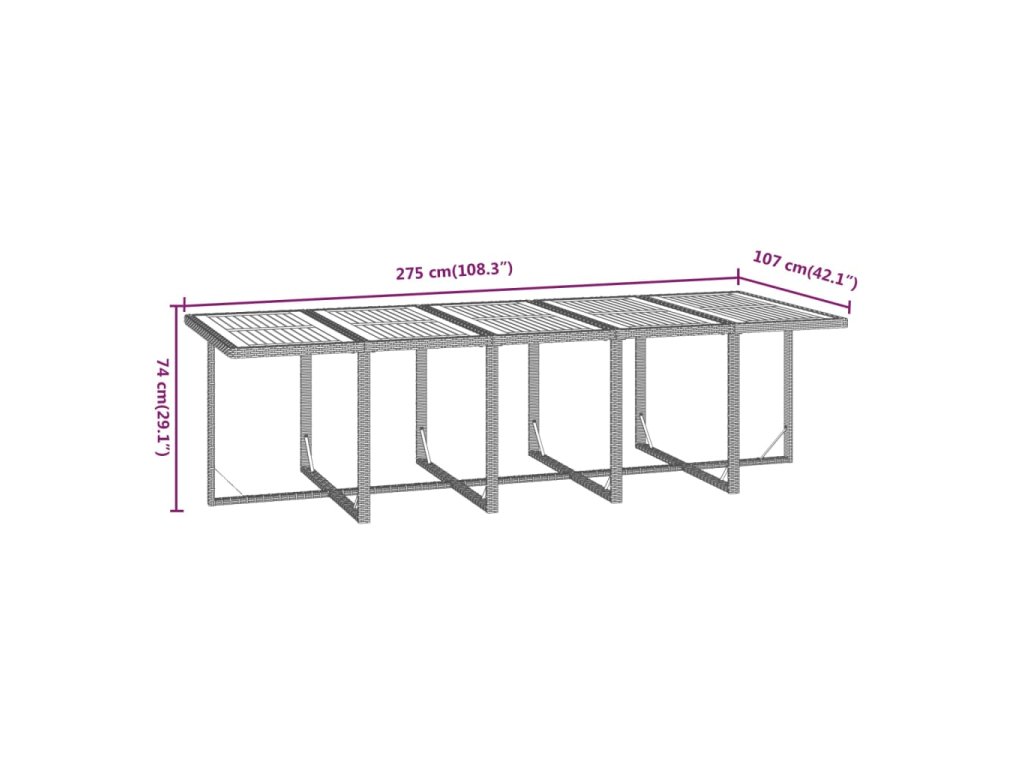 - Celkové rozměry stolu: 275 x 107 x 74 cm (D x Š x V)