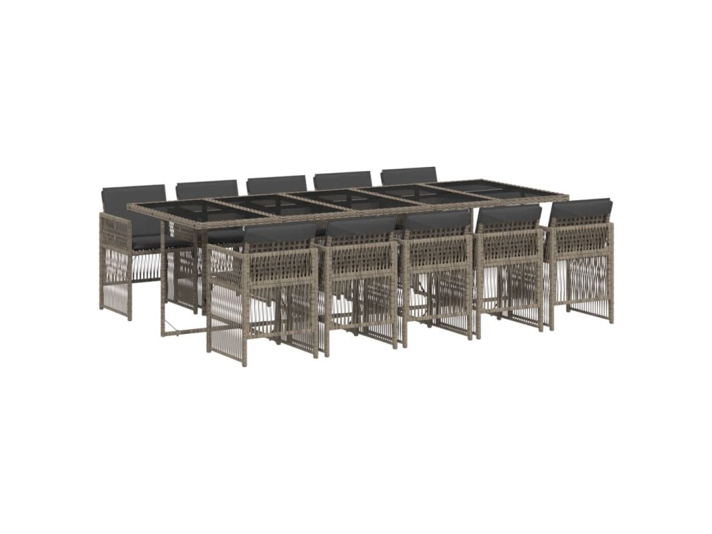 11dílný zahradní jídelní set s poduškami šedý polyratan 3210932