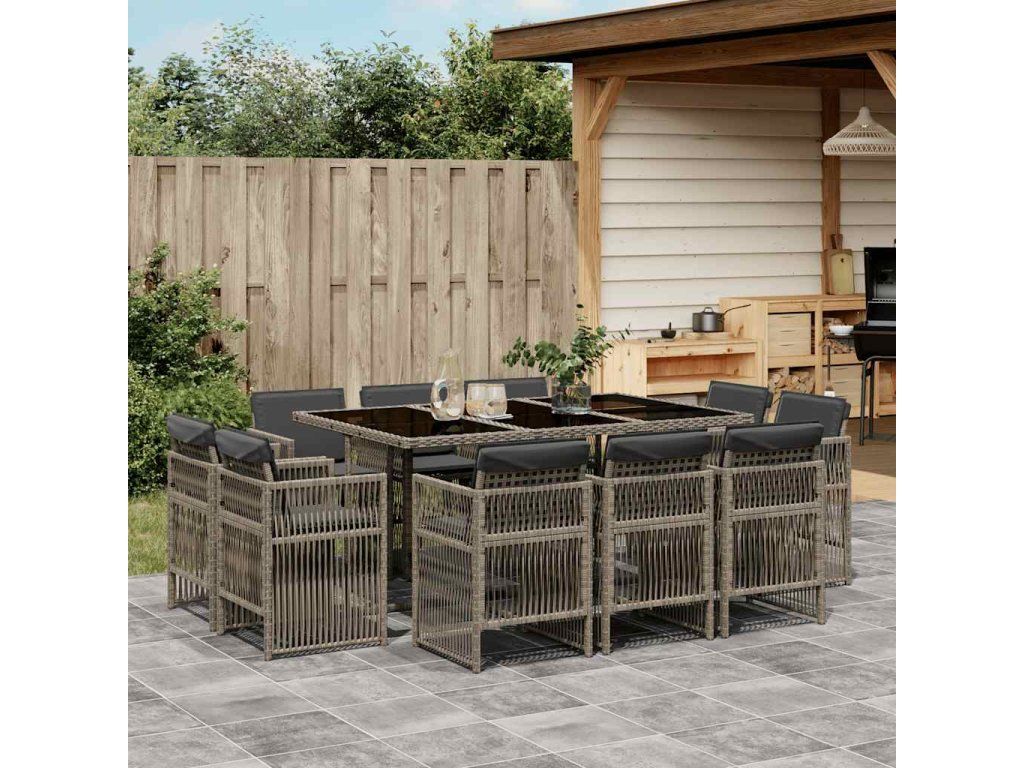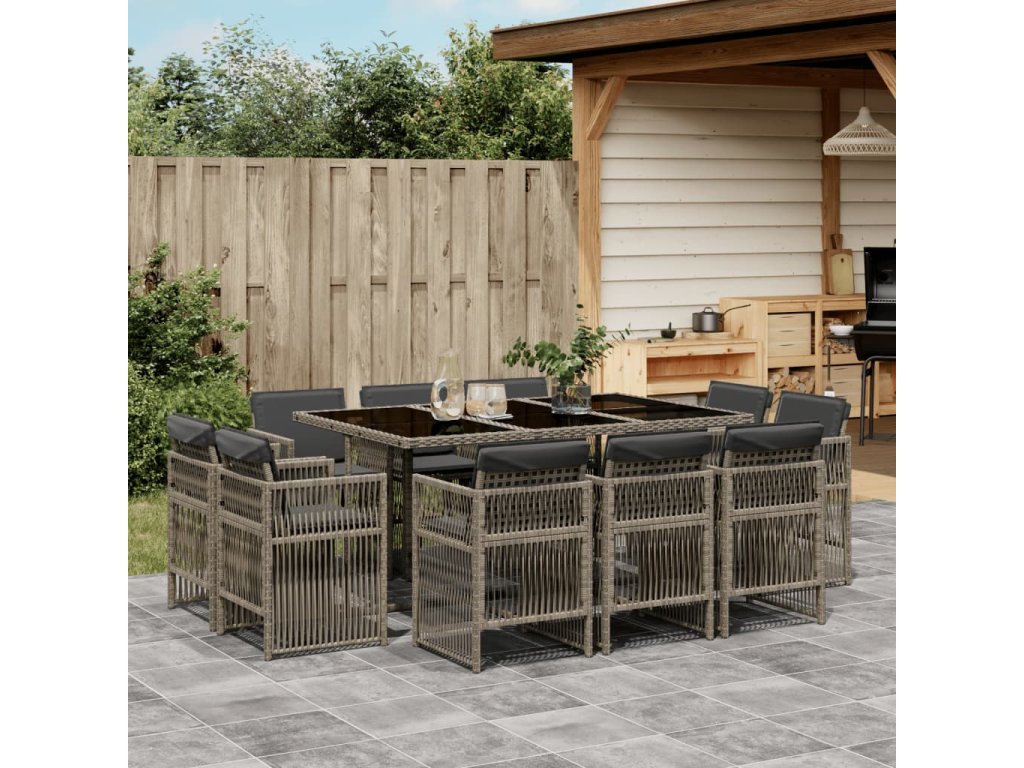 11dílný zahradní jídelní set s poduškami šedý polyratan 3211028