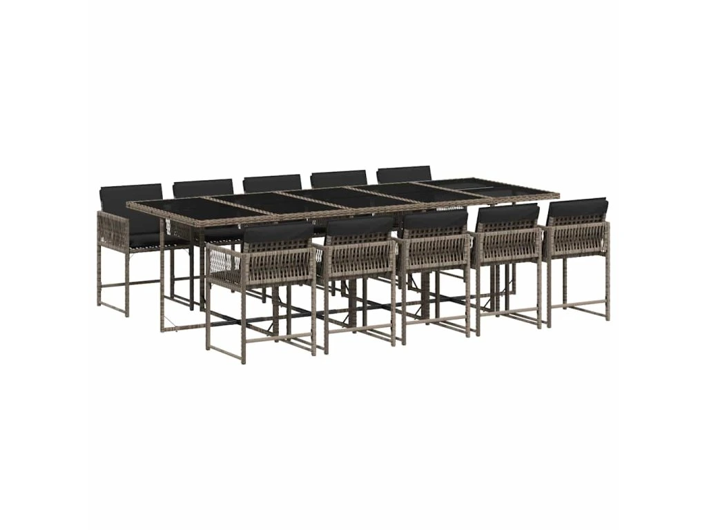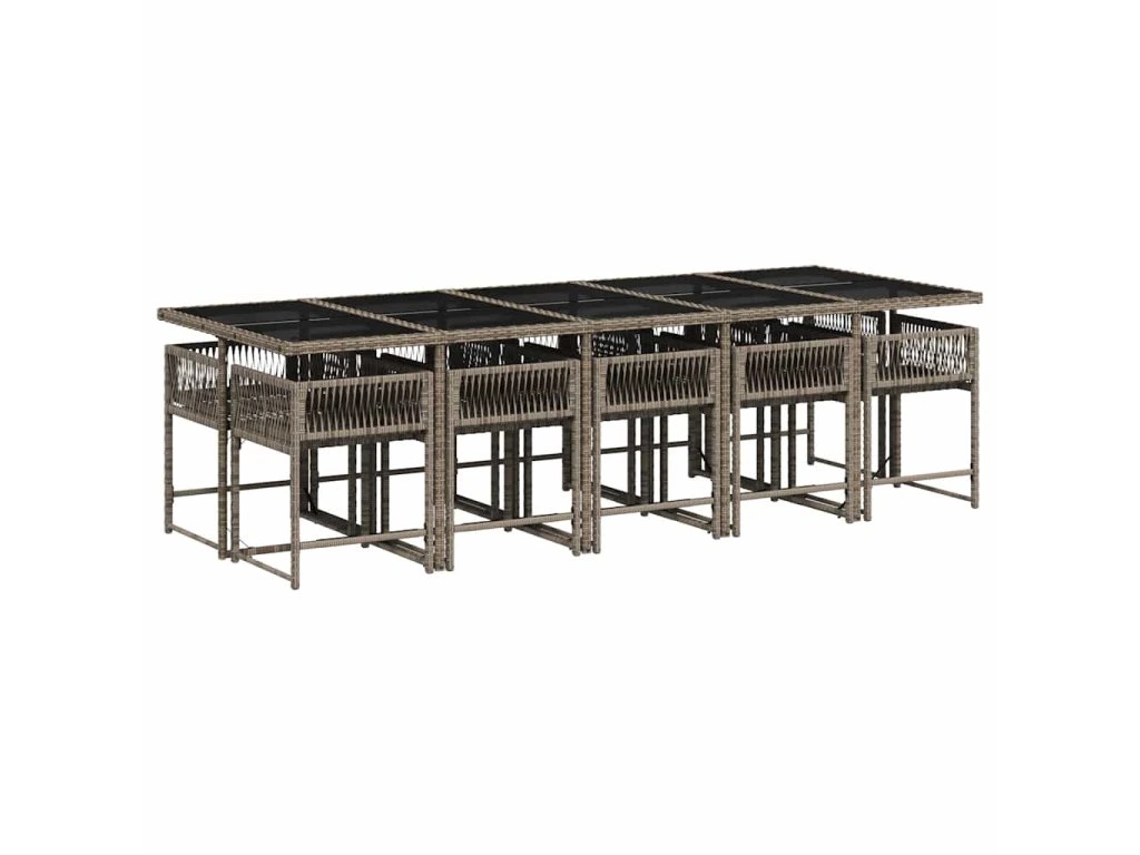 11dílný zahradní jídelní set s poduškami šedý polyratan 3211472