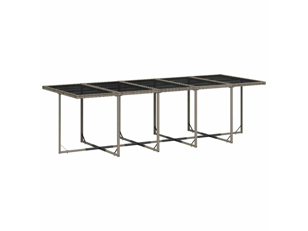 - Skleněná deska stolu: Deska venkovního stolu je zhotovena ze silného a odolného tvrzeného skla, takže ji snadno očistíte vlhkým hadříkem a zároveň do vašeho venkovního prostoru vnese nádech elegance.