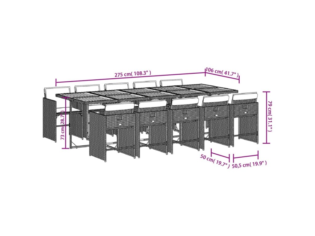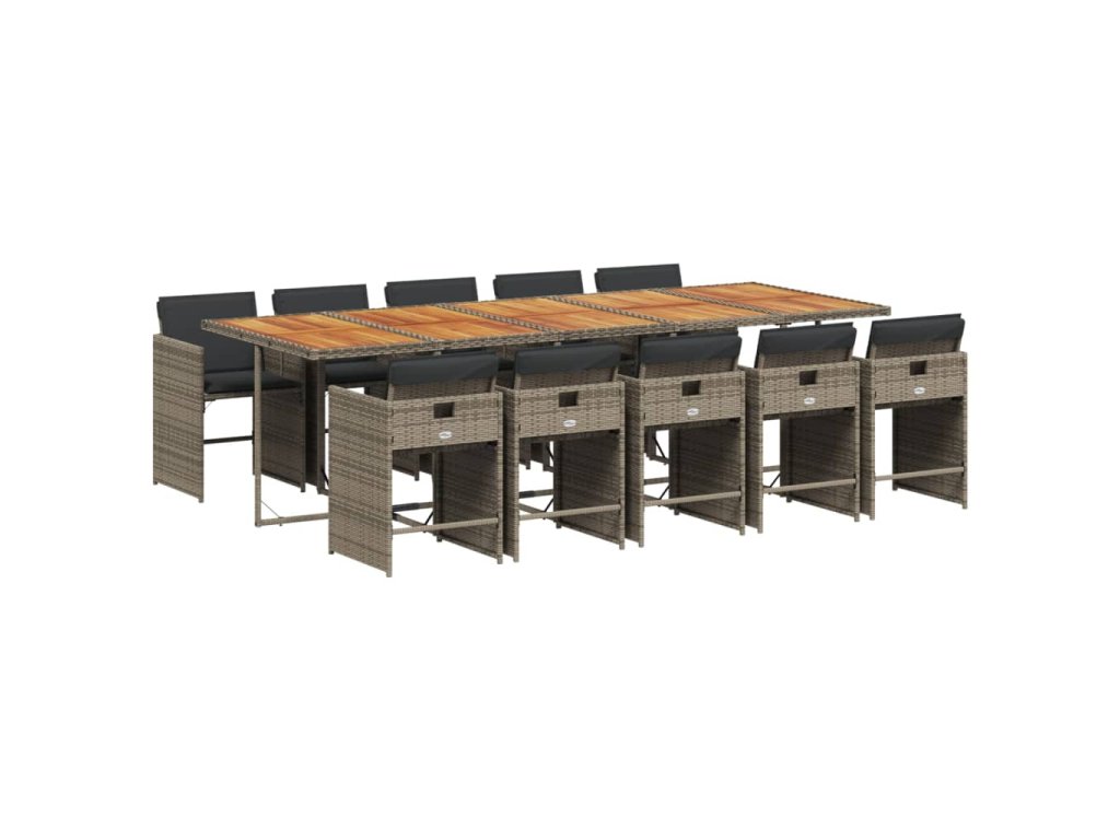 11dílný zahradní jídelní set s poduškami šedý polyratan 3277885
