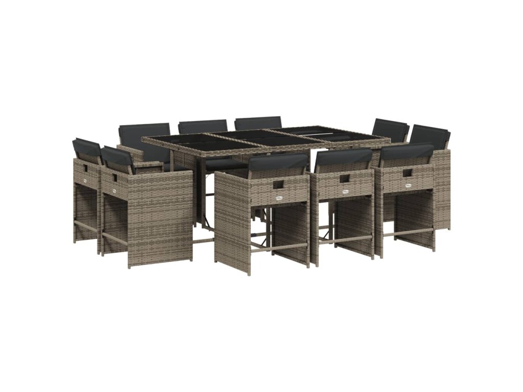 11dílný zahradní jídelní set s poduškami šedý polyratan 3277975