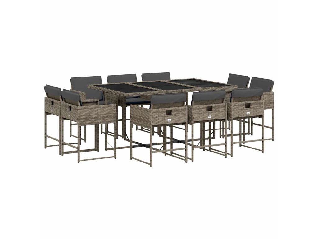 11dílný zahradní jídelní set s poduškami šedý polyratan 3278155
