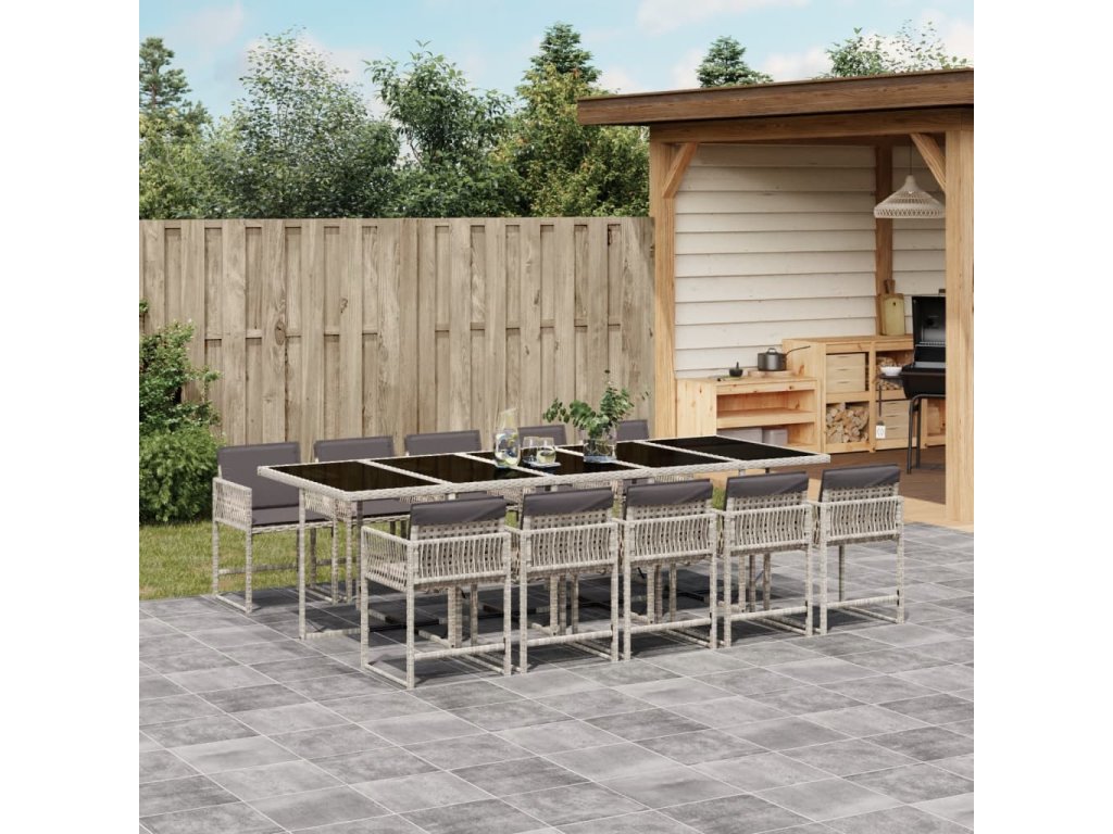 11dílný zahradní jídelní set s poduškami světle šedý polyratan 3211475
