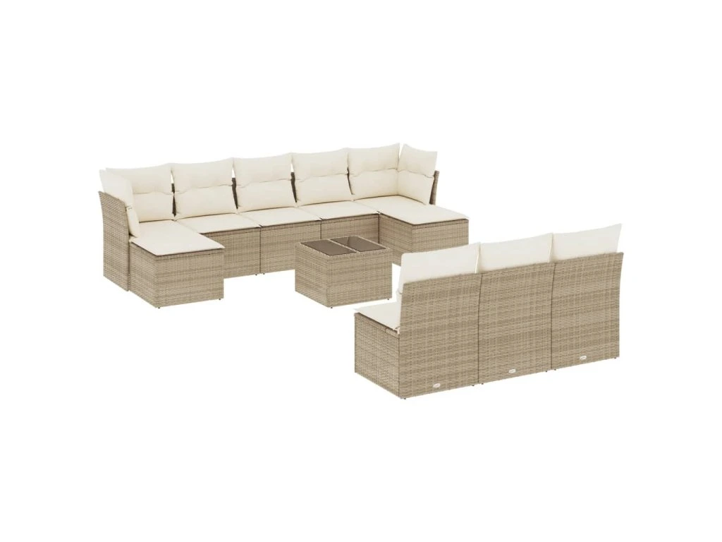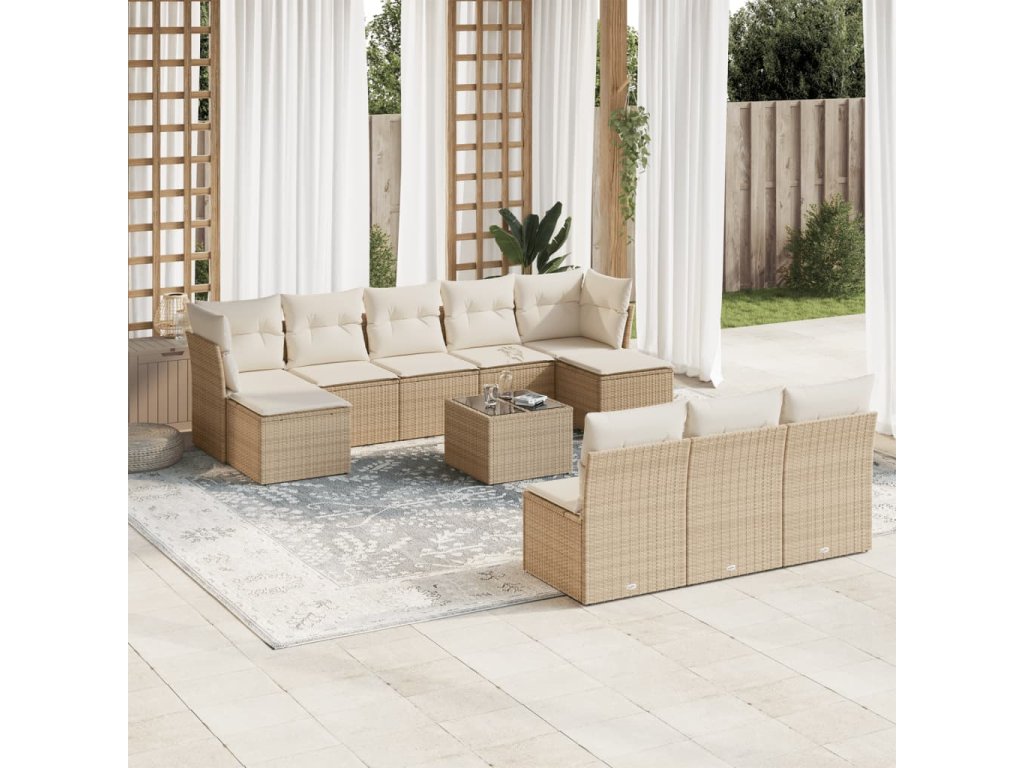 11dílný zahradní sedací souprava s poduškami béžový polyratan 3218298