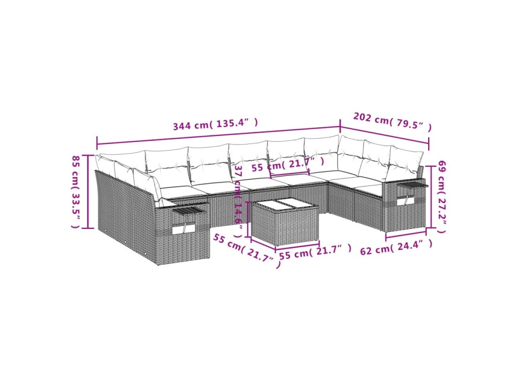 11dílný zahradní sedací souprava s poduškami béžový polyratan 3220677