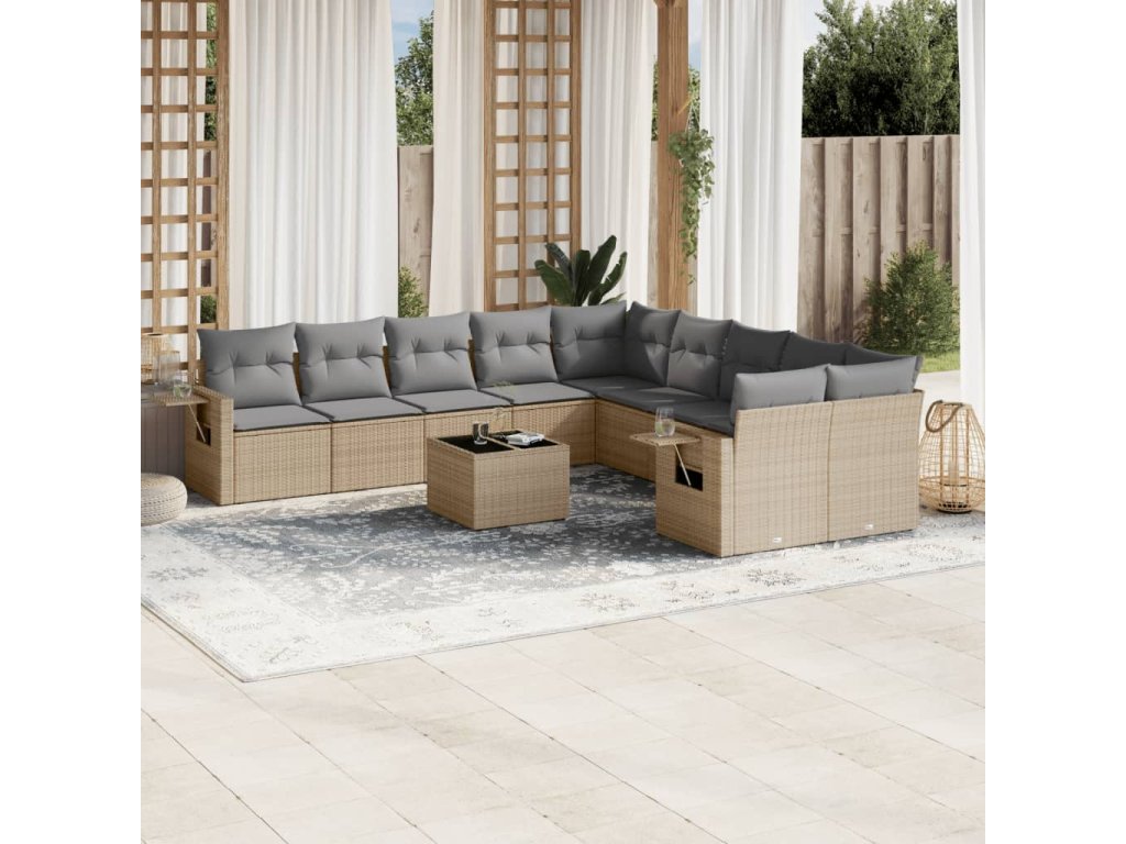 11dílný zahradní sedací souprava s poduškami béžový polyratan 3220718