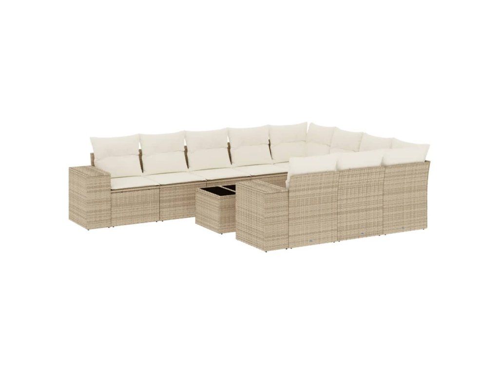 11dílný zahradní sedací souprava s poduškami béžový polyratan 3223097