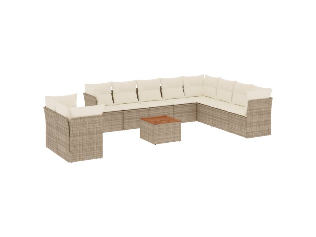 11dílný zahradní sedací souprava s poduškami béžový polyratan 3223720