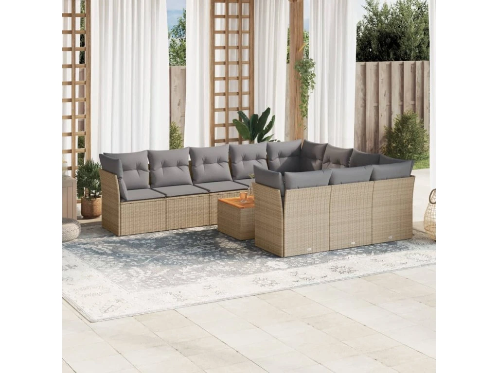 11dílný zahradní sedací souprava s poduškami béžový polyratan 3223840
