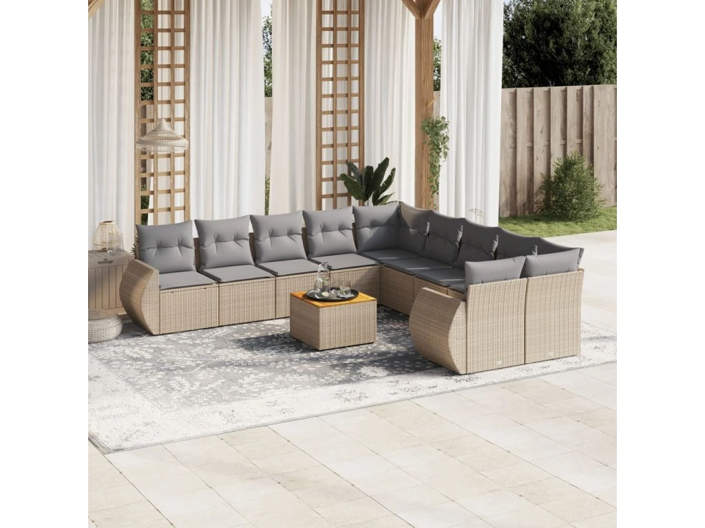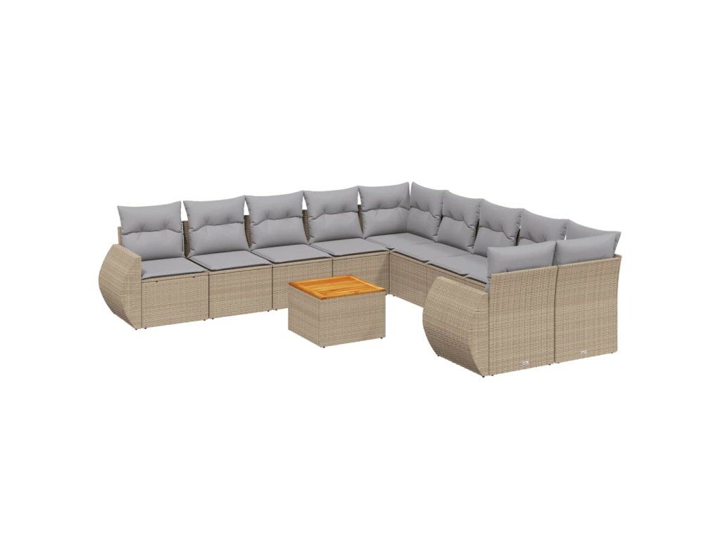 11dílný zahradní sedací souprava s poduškami béžový polyratan 3225198