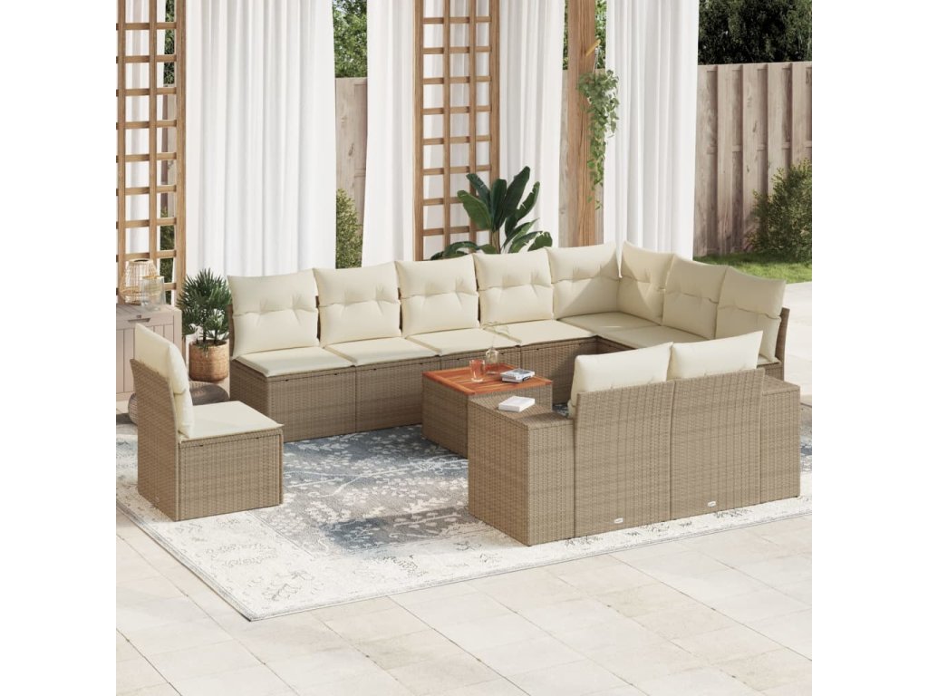 11dílný zahradní sedací souprava s poduškami béžový polyratan 3225498