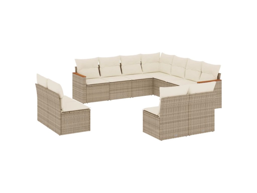 11dílný zahradní sedací souprava s poduškami béžový polyratan 3226086