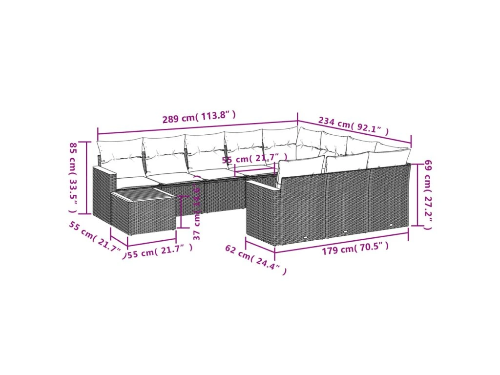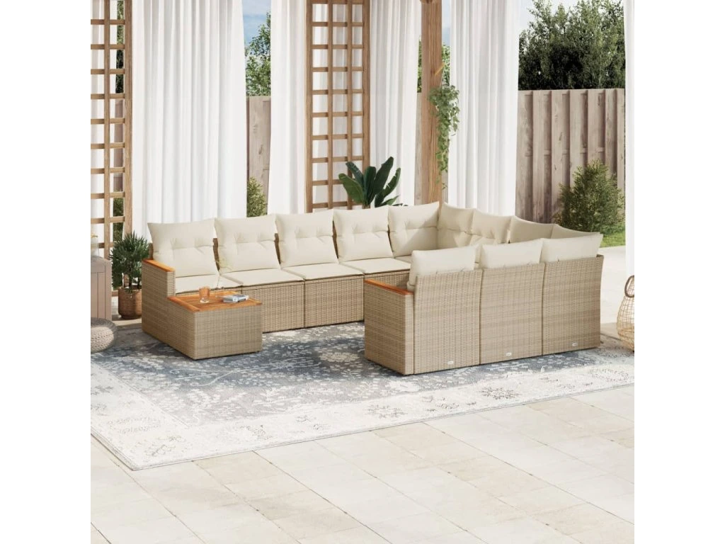 11dílný zahradní sedací souprava s poduškami béžový polyratan 3226366