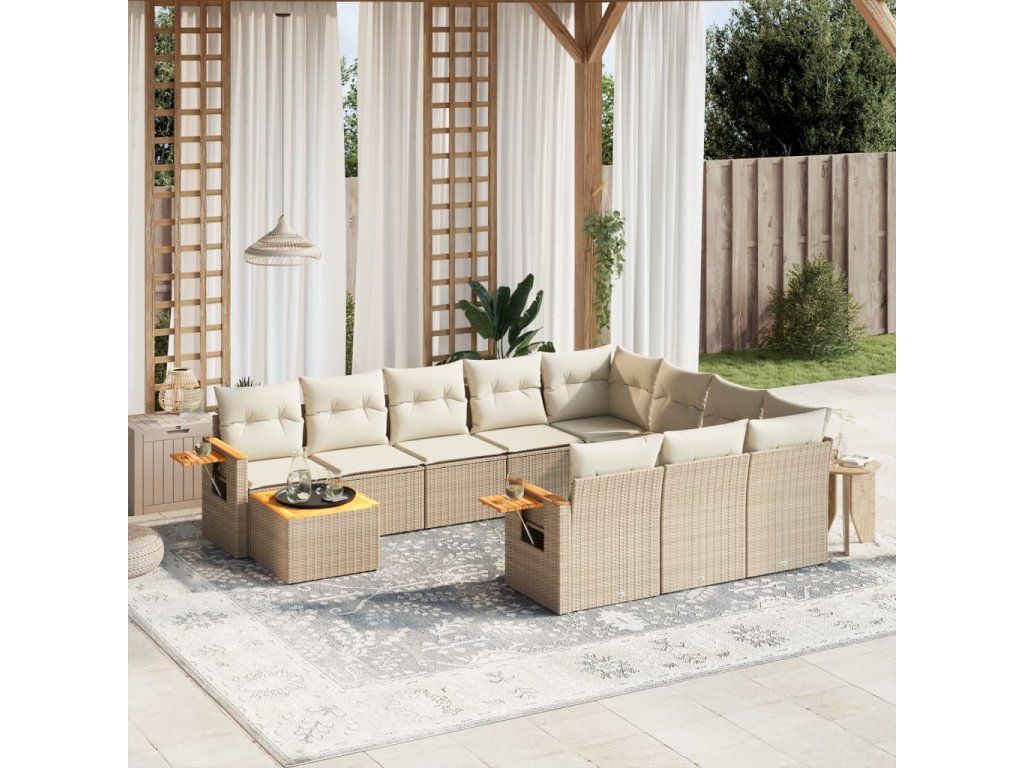 11dílný zahradní sedací souprava s poduškami béžový polyratan 3227206