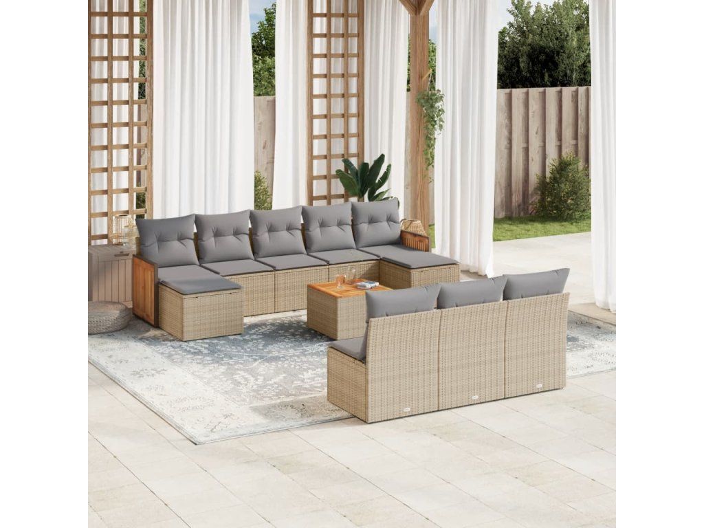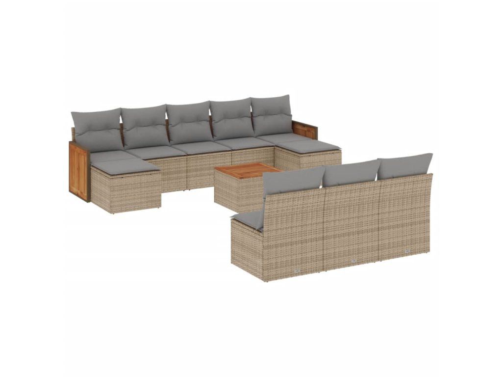 11dílný zahradní sedací souprava s poduškami béžový polyratan 3228075