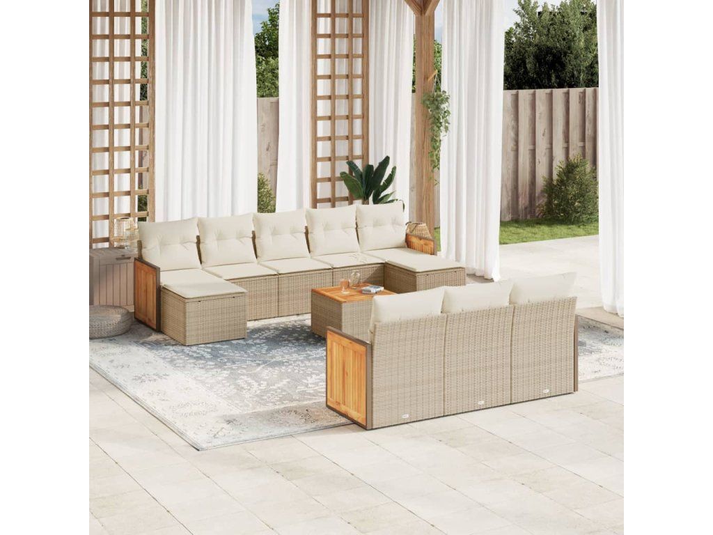 11dílný zahradní sedací souprava s poduškami béžový polyratan 3228102