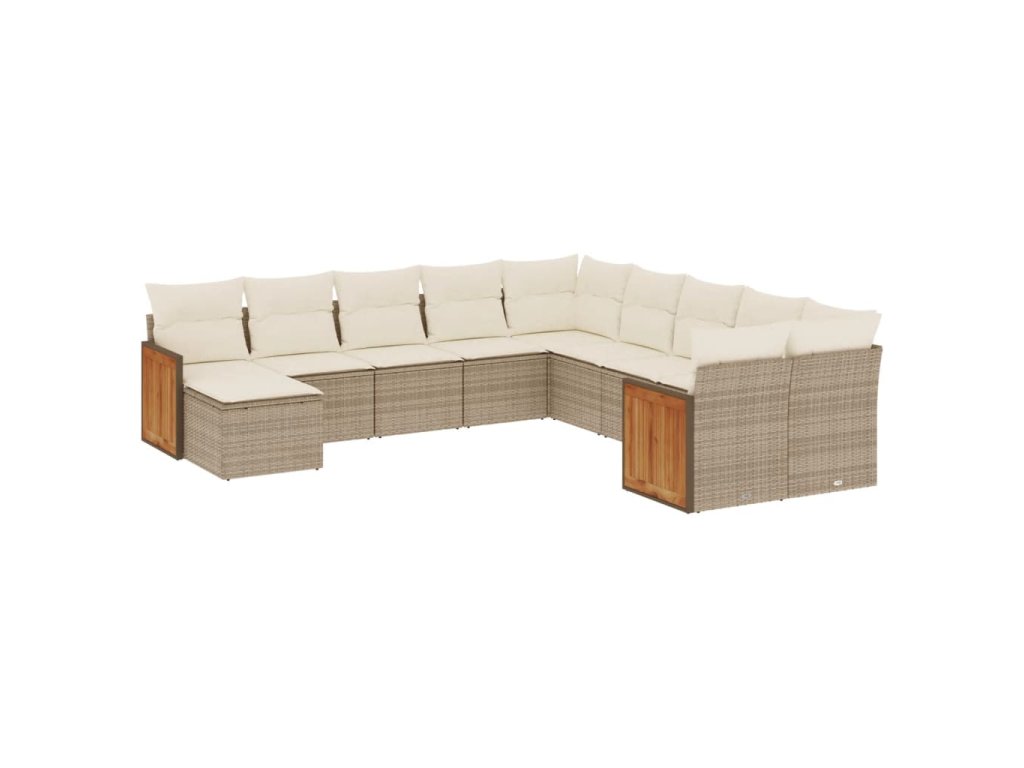 11dílný zahradní sedací souprava s poduškami béžový polyratan 3228249