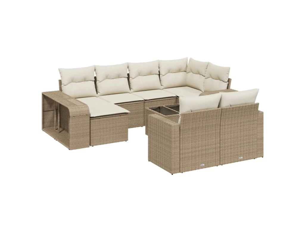11dílný zahradní sedací souprava s poduškami béžový polyratan 3228908