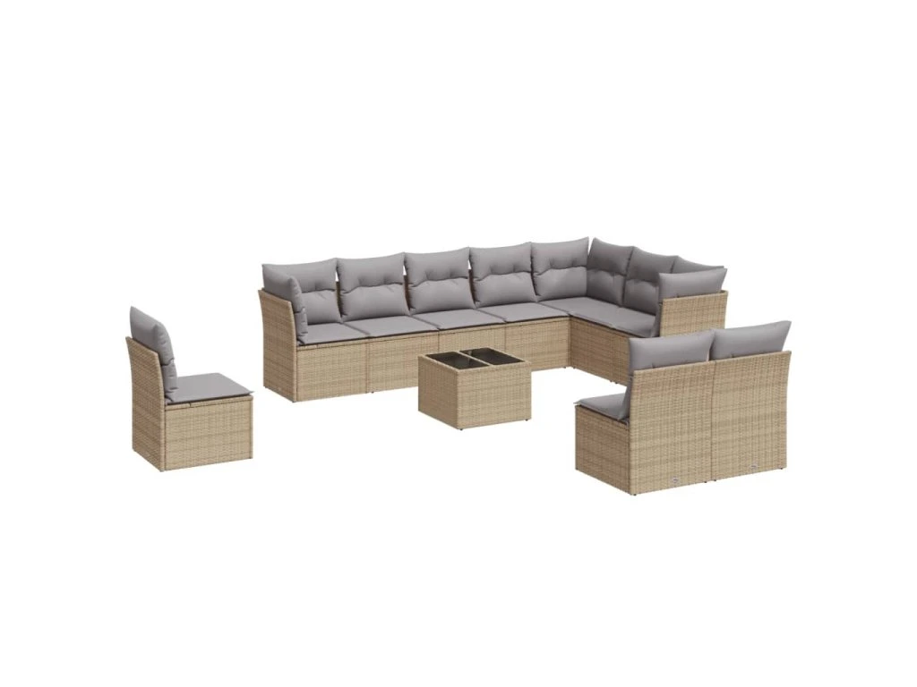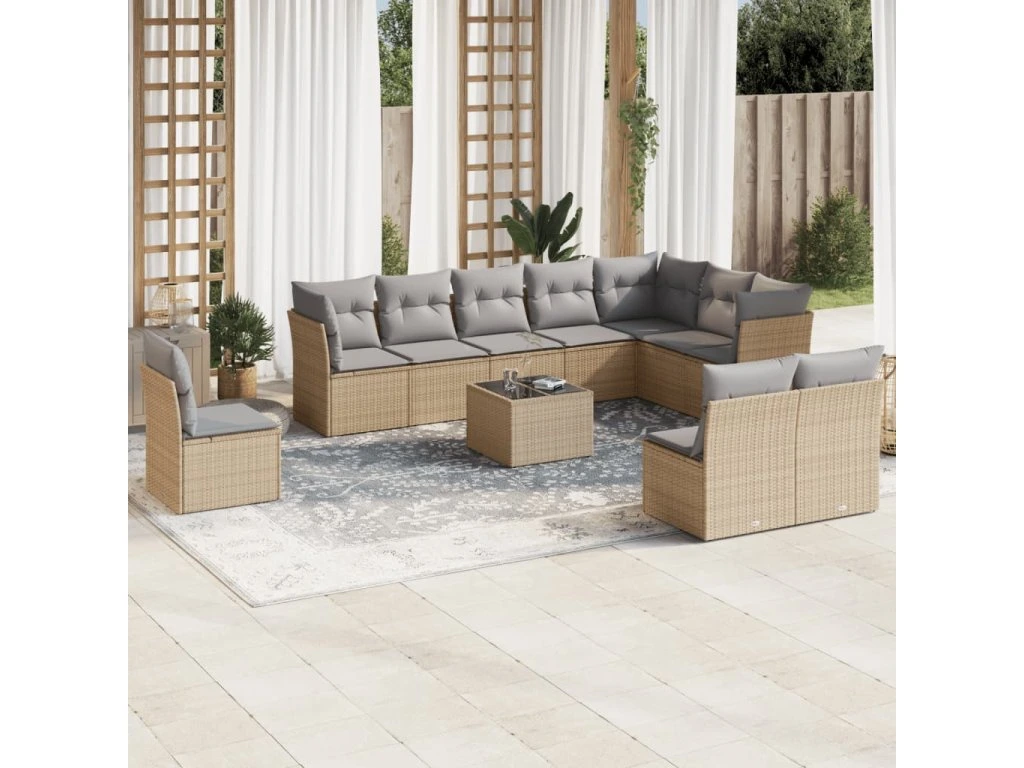 11dílný zahradní sedací souprava s poduškami béžový polyratan 3249648