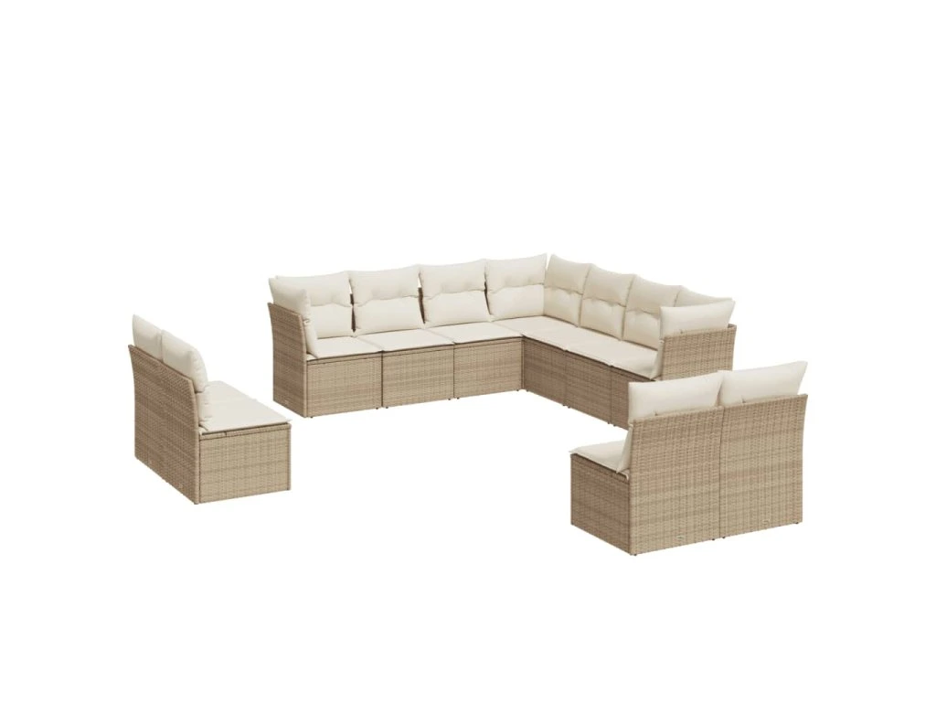 11dílný zahradní sedací souprava s poduškami béžový polyratan 3249657