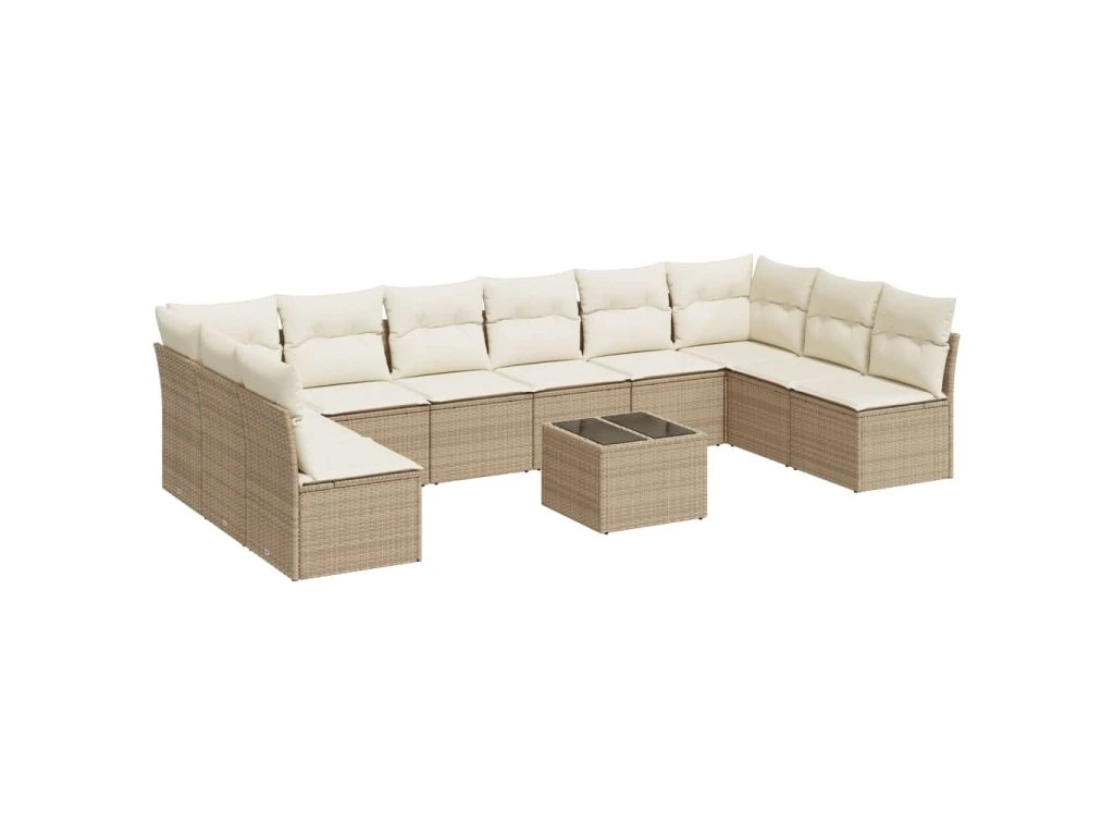 11dílný zahradní sedací souprava s poduškami béžový polyratan 3249937