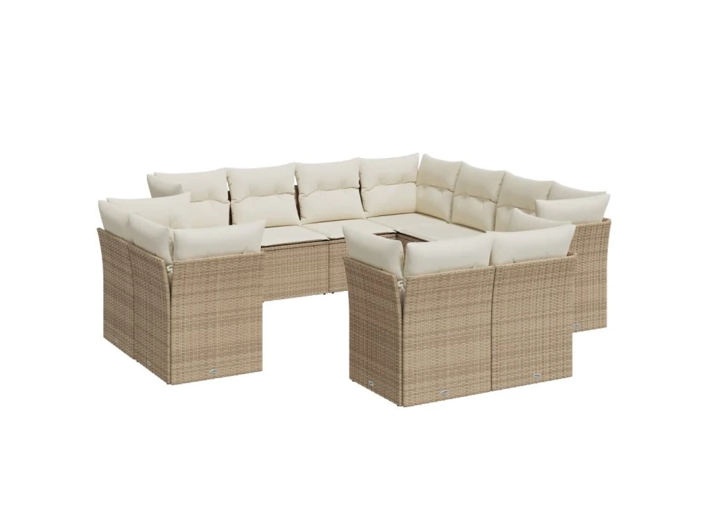 11dílný zahradní sedací souprava s poduškami béžový polyratan 3250347