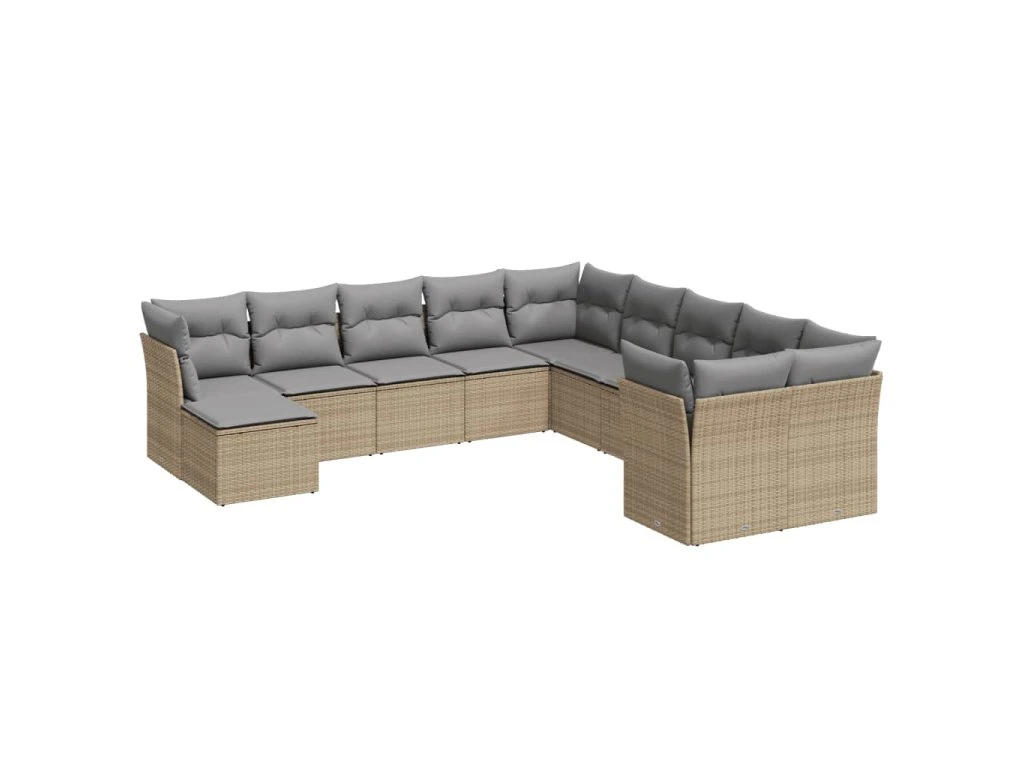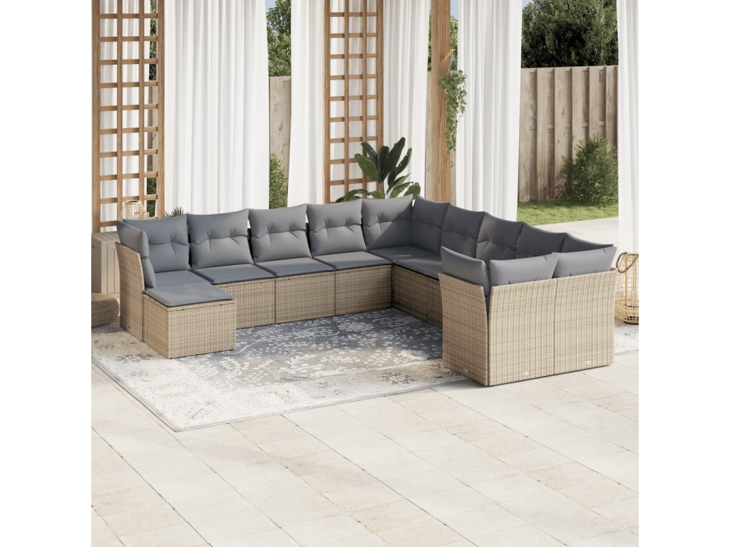 11dílný zahradní sedací souprava s poduškami béžový polyratan 3250448