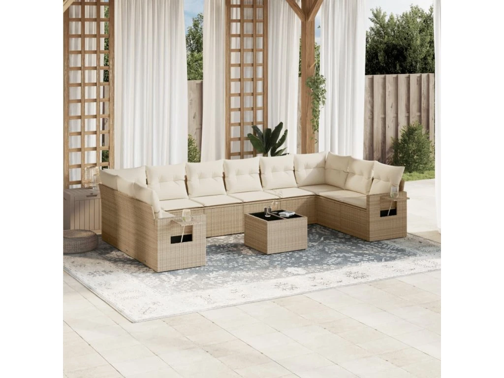 11dílný zahradní sedací souprava s poduškami béžový polyratan 3253015