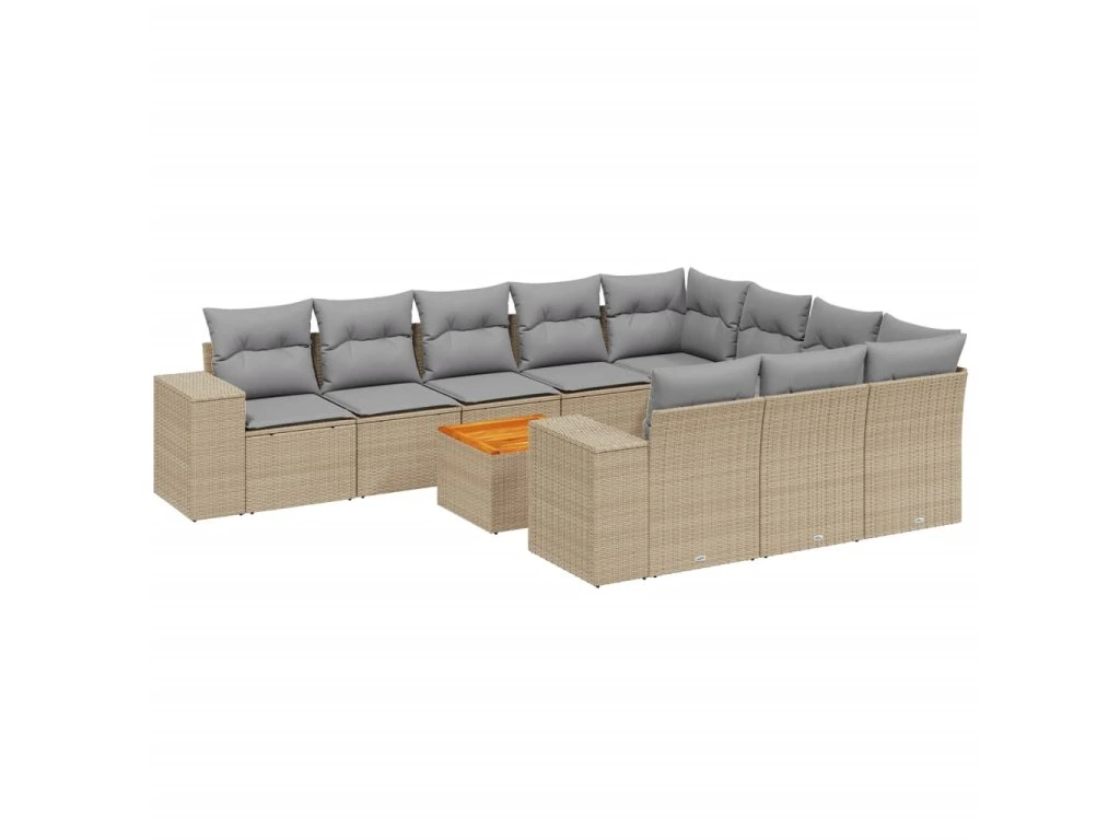 11dílný zahradní sedací souprava s poduškami béžový polyratan 3257956