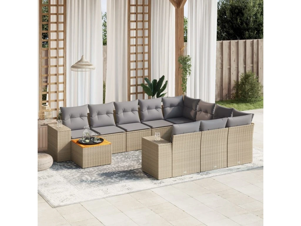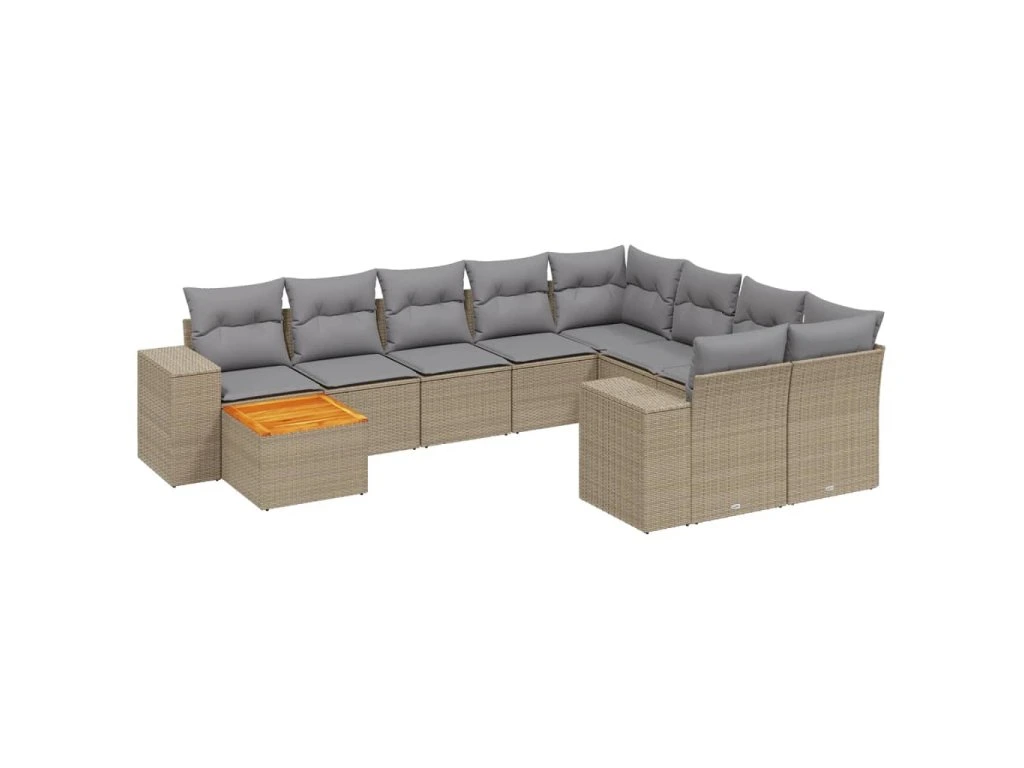 11dílný zahradní sedací souprava s poduškami béžový polyratan 3257963
