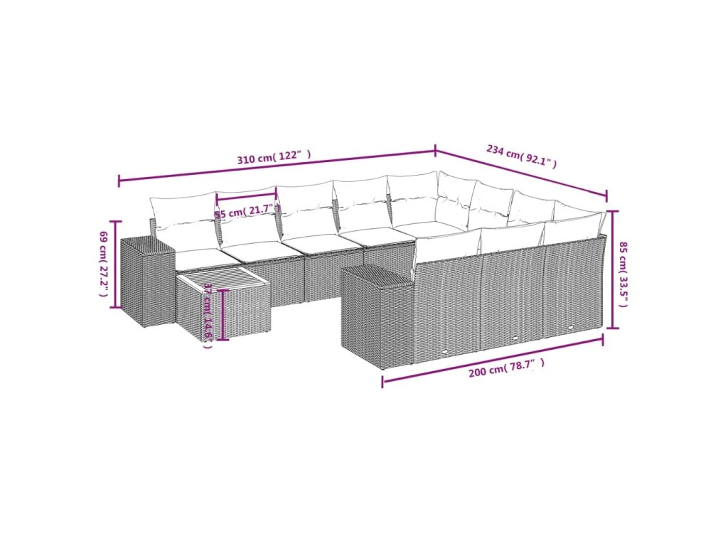 Tato zahradní sedací souprava je dokonalým doplňkem vaší zahrady, terasy nebo dvorku a poskytne vám pohodlné a příjemné místo, kde si můžete povídat s rodinou a přáteli nebo jen tak odpočívat a užívat si pobyt venku.