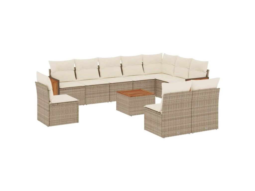 11dílný zahradní sedací souprava s poduškami béžový polyratan 3260161