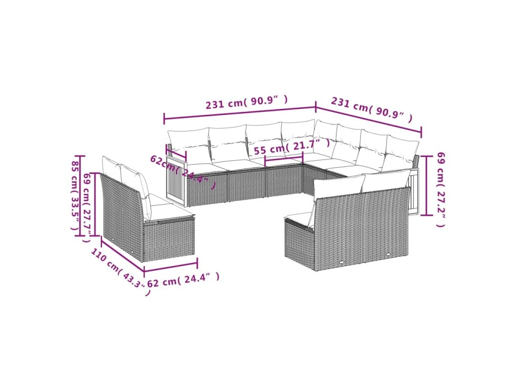 11dílný zahradní sedací souprava s poduškami béžový polyratan 3260168