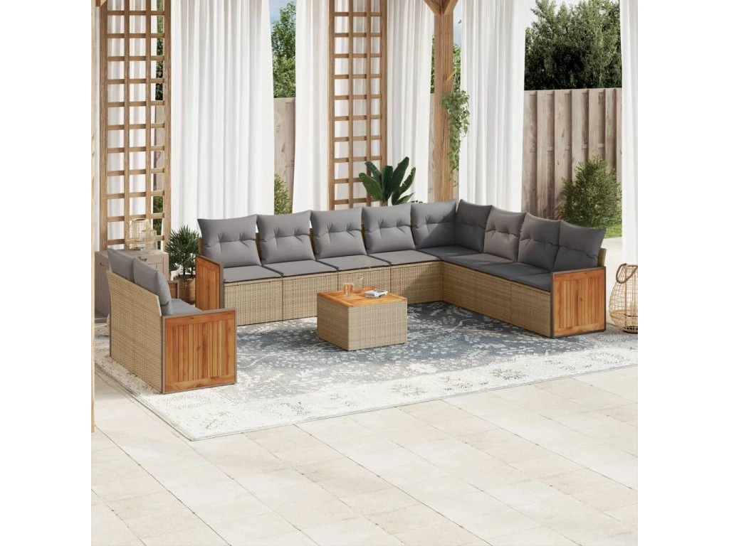 11dílný zahradní sedací souprava s poduškami béžový polyratan 3260204