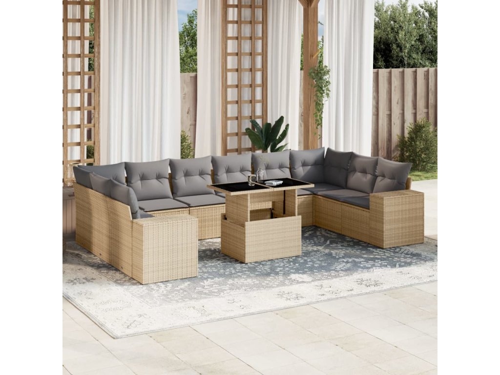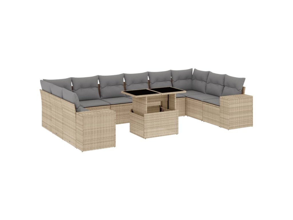 11dílný zahradní sedací souprava s poduškami béžový polyratan 3269409