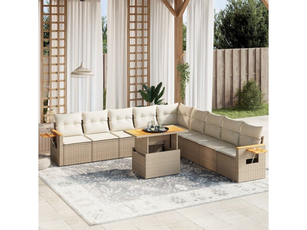 11dílný zahradní sedací souprava s poduškami béžový polyratan 3273704
